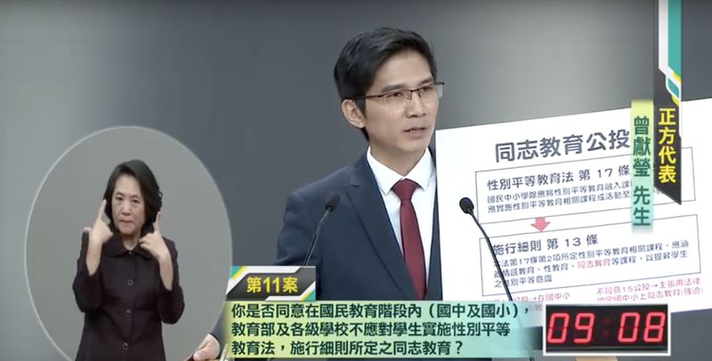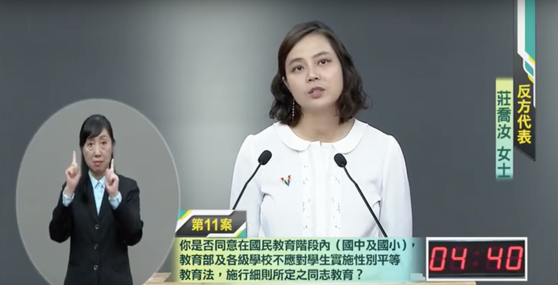 性別教育公投辯論會,於今日下午四點開始,針對第十一案,愛家公投提出的性別教育裡的認識同志教育,進行辯論。