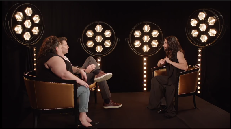 Hugh Jackman 對 Conchita Wurst 說著: