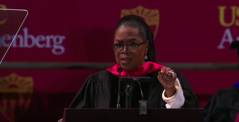 歐普拉於今年五月於南加州大學安納伯格傳播與新聞學院發表畢業演說,給 2018 屆畢業生,當現今社會充斥槍枝暴力、氣候變遷、系統性種族歧視、媒體偏見、經濟不平等⋯⋯各種需被正視且做出改變的議題時,她提出,「無家可歸者需機會,成癮者需治療,『夢想者』需保護,監獄系統需改革,LGBTQ 社群需獲得接受,社會安全網需挽救,厭女行為——必須停止。」