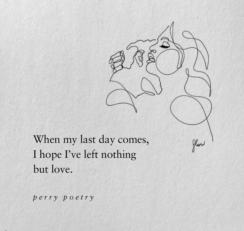 When my last day comes, I hope I've left nothing but love