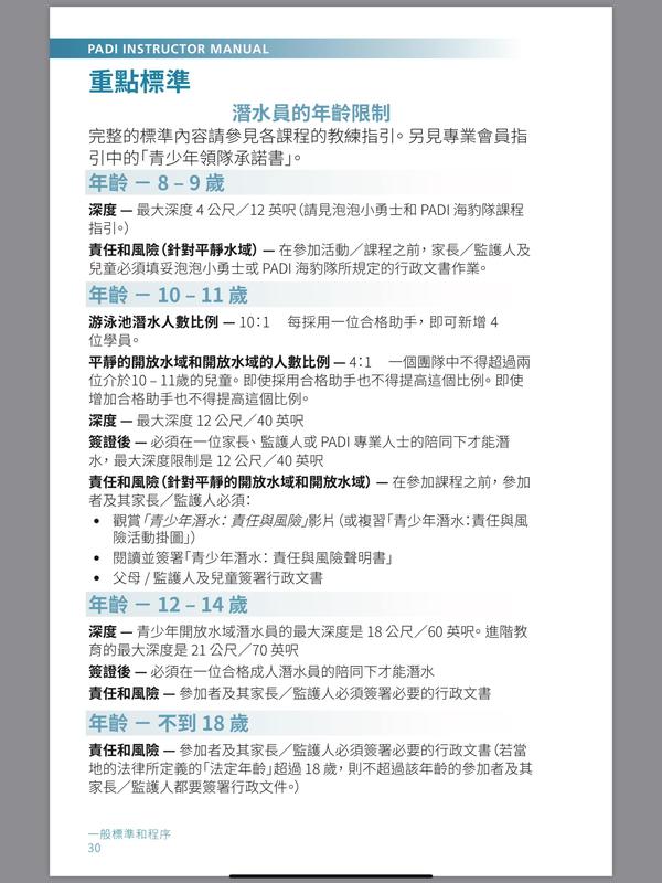 而相關年齡及深度限制請參考下圖: