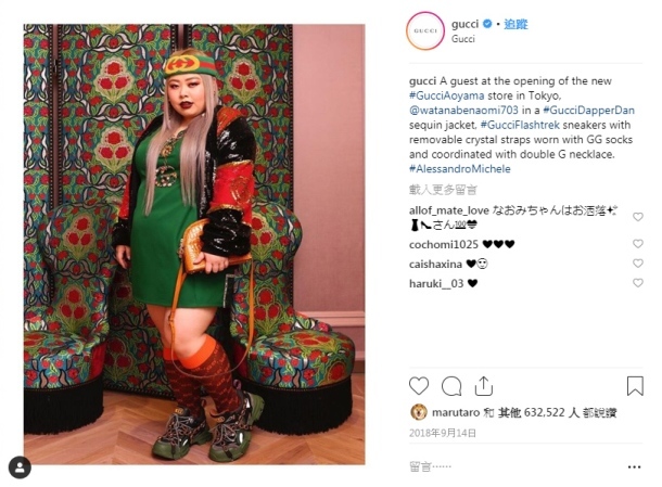 2018 年 9 月,渡邊直美登上 GUCCI 的官方 IG,又引起一波討論。圖片|GUCCI 官方 IG