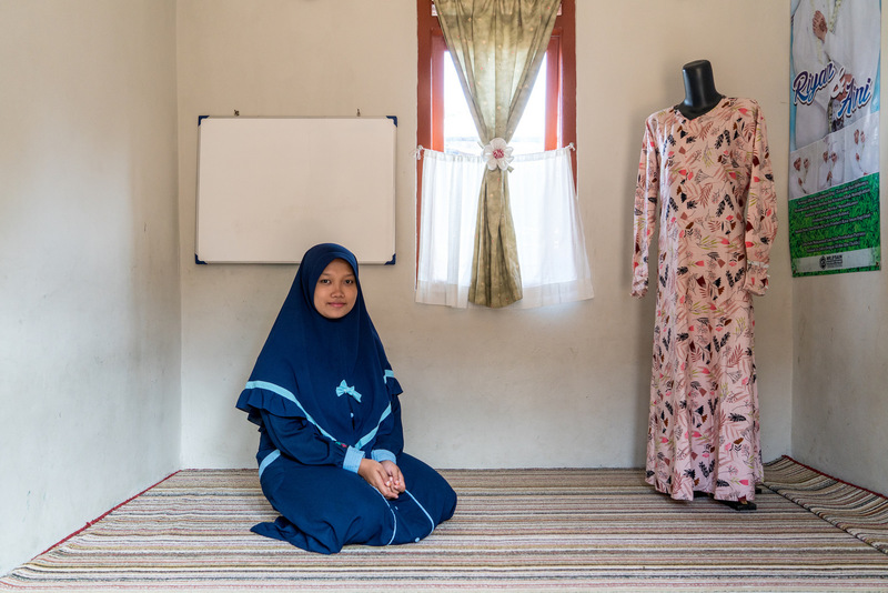 「現在每個月大概賺兩百五十萬(印尼盾,約為台幣 5000 元),還沒有扣電、網路、弟弟跟另外一個員工的薪水,也要付房租,這塊地是奶奶的。我的夢想是讓這間文具店越來越大,以後想買 machine(機器),做帆布的,還有賺錢給兒子唸書、跟他住在一起。」