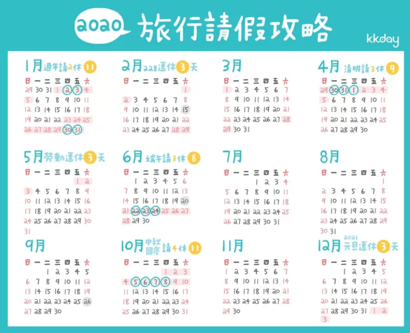 本文授權轉載至 KKday,原文詳見《【2020連假請假攻略教學】2020出國旅遊必看,請對假讓你連休11天!台灣、日本、韓國2020連假、行事曆比較》