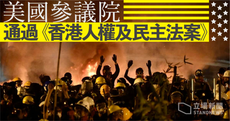 美國參議院在美國東岸時間傍晚 6 時,正式以「一致通過方式」(Unanimous Consent)通過《香港人權民主法案》的參議院版本,也通過了有關限制非致命武器出口的《保護香港法案》。